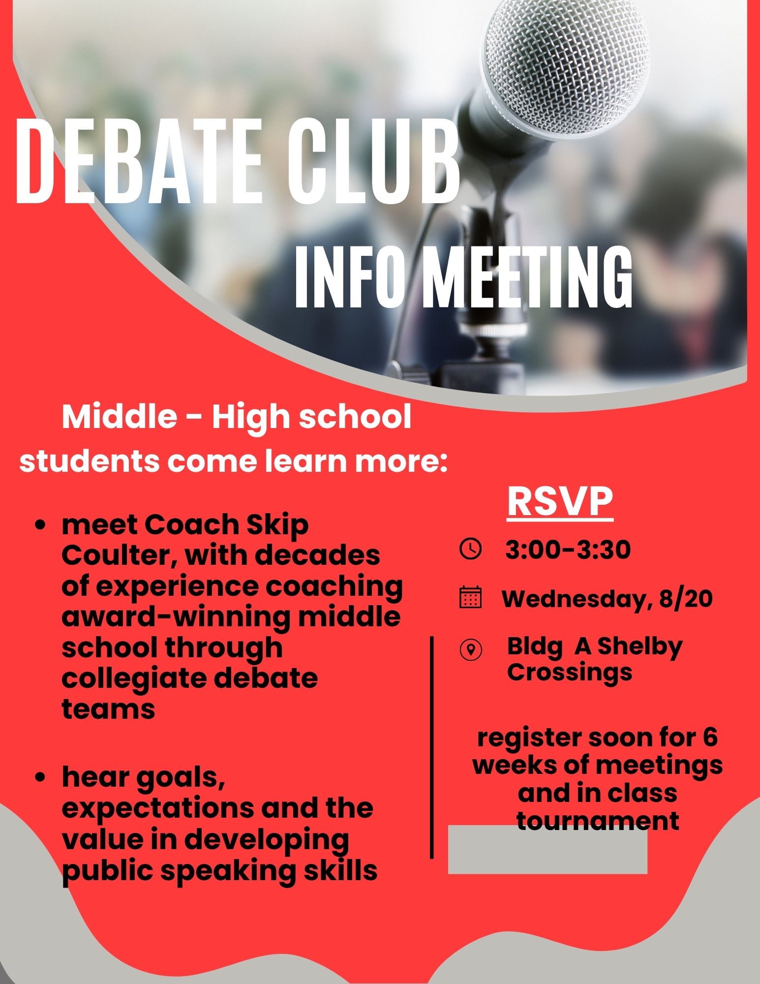 Please let us know if you can join us for this meeting to learn more about the speech/debate classes coming soon!
